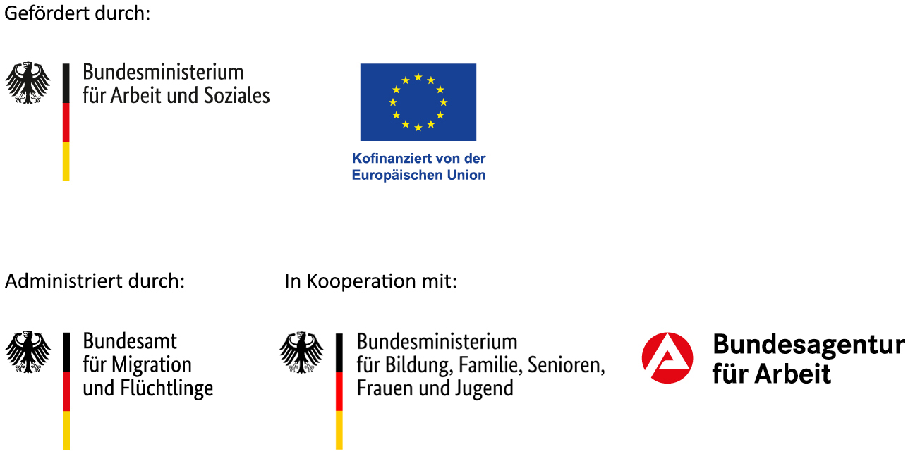 Das Teilvorhaben „IQ NRW – West: Gemeinsam durchstarten“ wird im Rahmen des Förderprogramms IQ – Integration durch Qualifizierung durch das Bundesministerium für Arbeit und Soziales und die Europäische Union über den Europäischen Sozialfonds Plus (ESF Plus) gefördert und vom Bundesamt für Migration und Flüchtlinge administriert. Partner in der Umsetzung sind das Bundesministerium für Bildung, Familie, Senioren, Frauen und Jugend und die Bundesagentur für Arbeit.